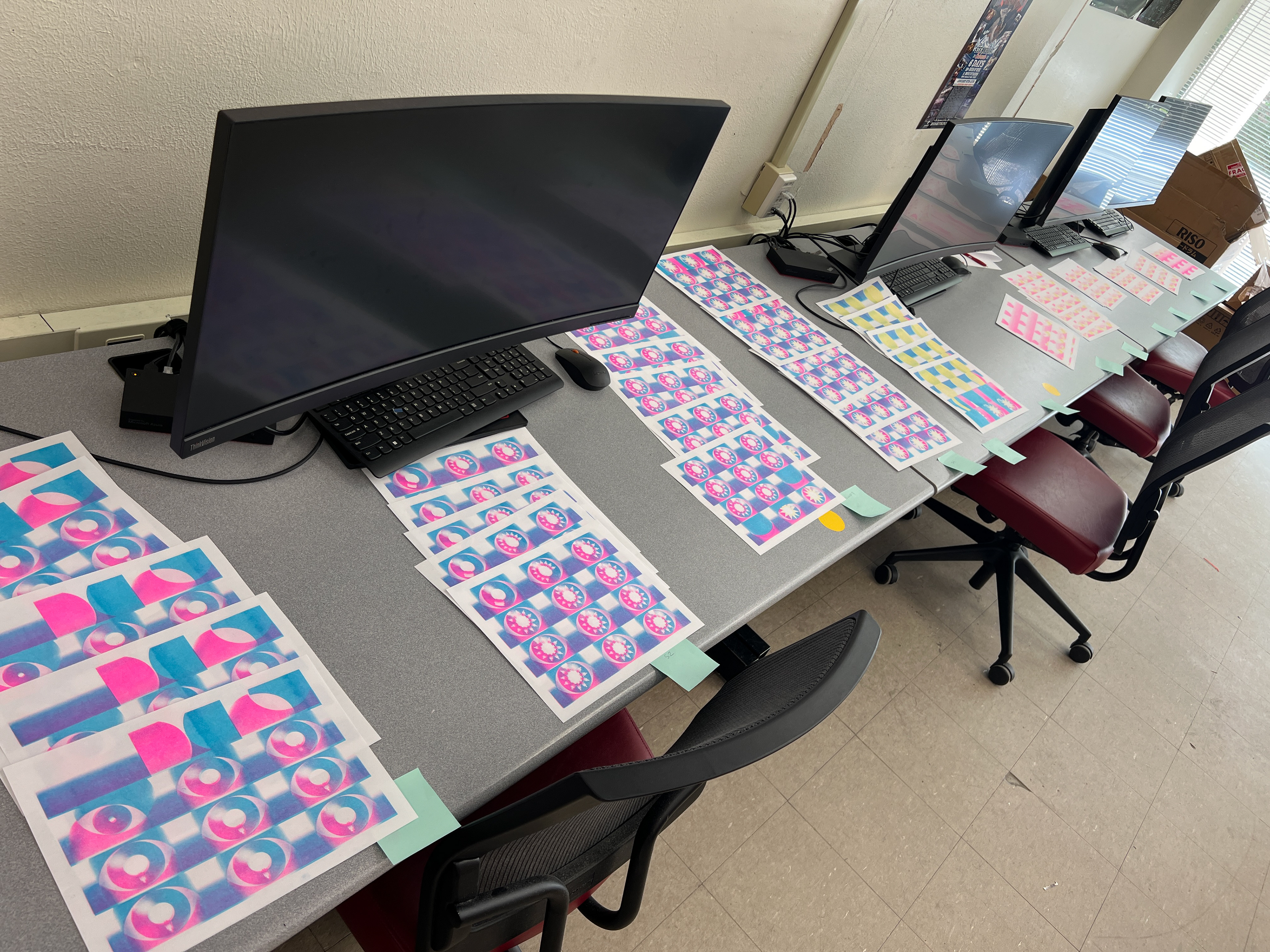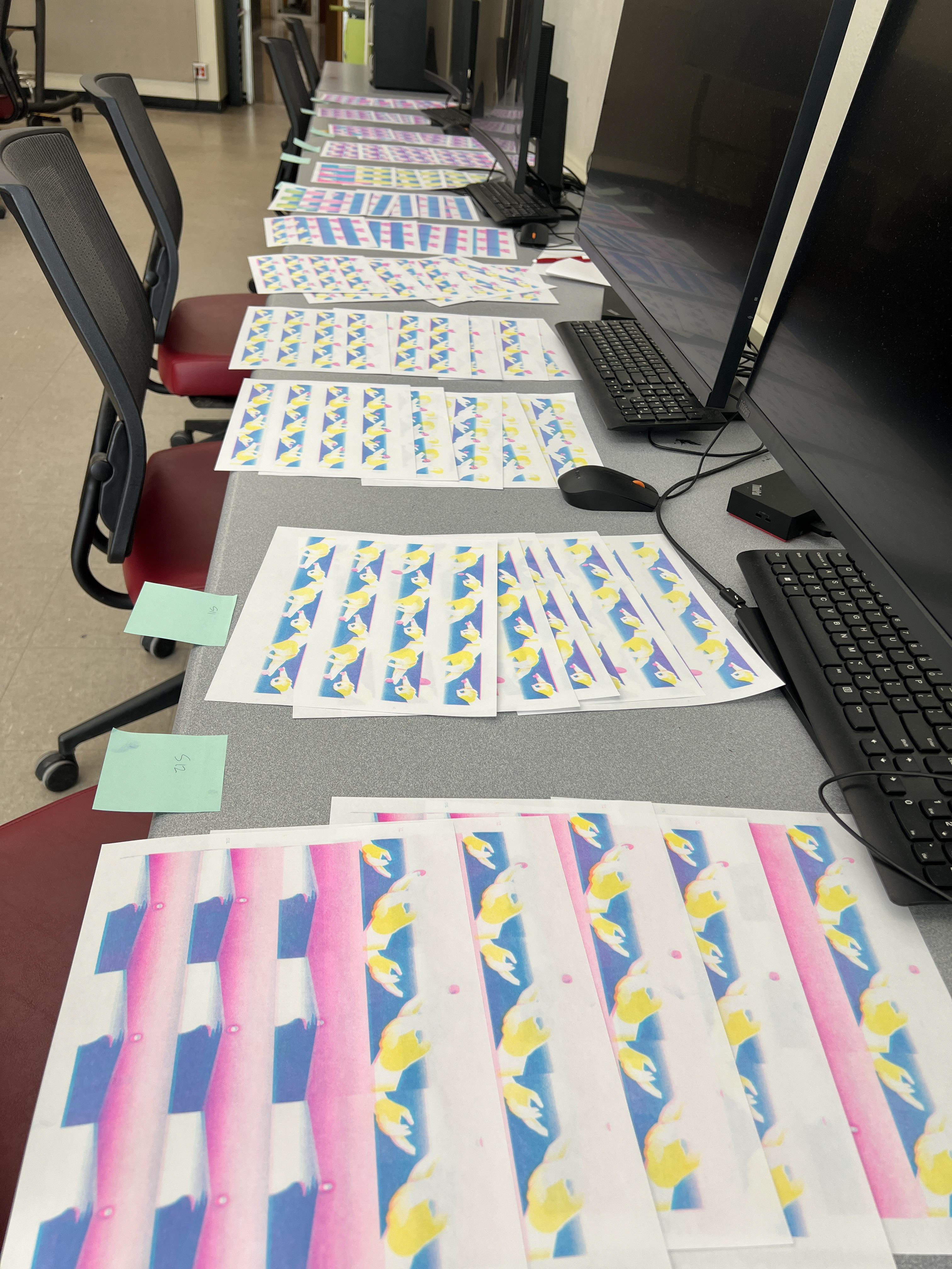 My research has to do with exploring this process in motion design. Through a process of animating digitally, printing out each frame with the Risograph, and scanning the frames back in, I want to utilize this rare technology to achieve this look without using filters or effects. Ultimately, this research project will deepen my understanding on how traditional print techniques can merge with digital design, enhancing both my academic growth and practical skills.